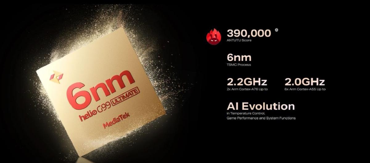 | Chipset | Mediatek Helio G99 Ultimate |