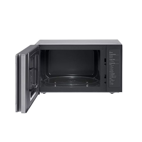 On the outside, the LG 42L NeoChef Grill Microwave (MH8265CIS) uses a Noble Silver “smog” tempered-glass door with a side-swing opening and a glass touch control panel with white LED display.